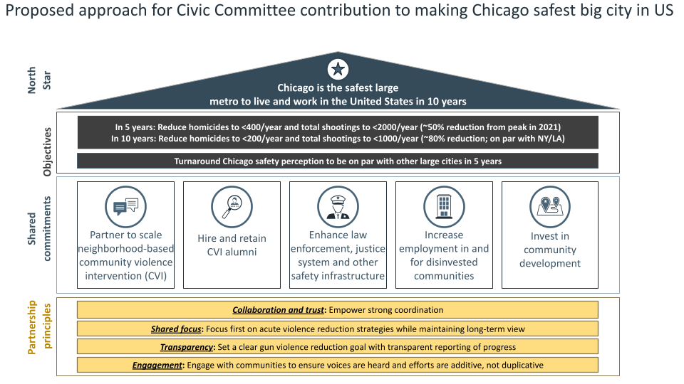 In doing so, the Civic Committee embraced an ambitious set of goals that would put Chicago on track to be the safest big city in America: